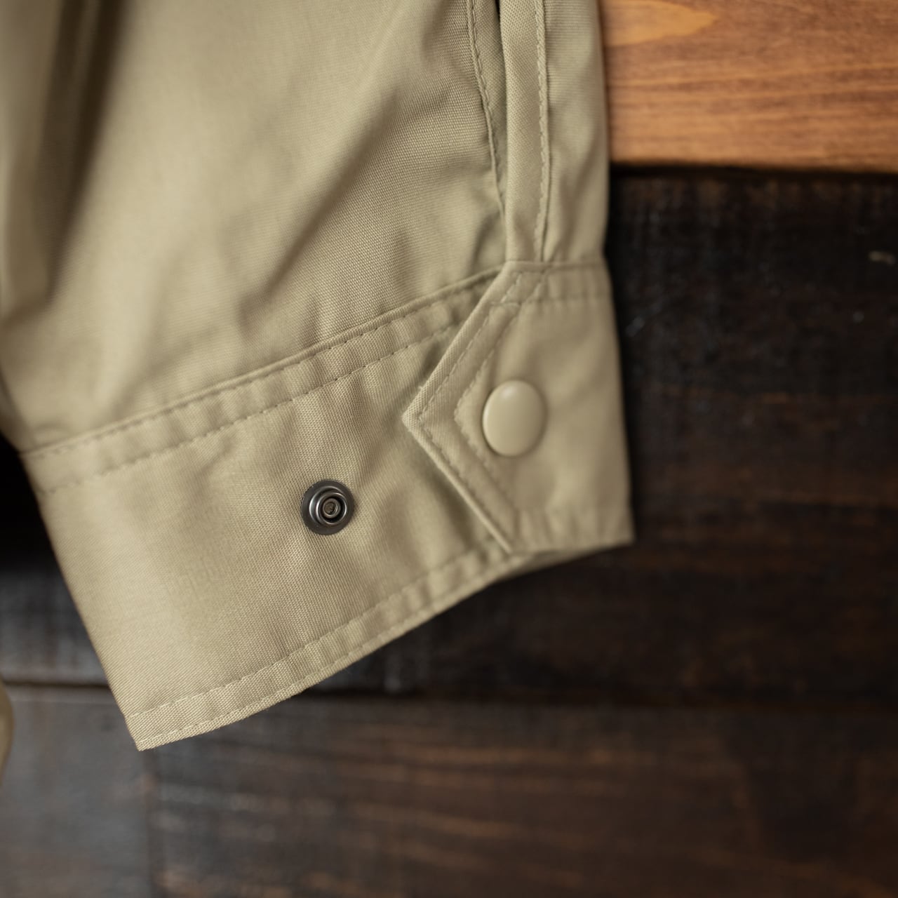 T/Cならではの手触り、ポケットや袖口のDOTボタン、裏地付き仕様など